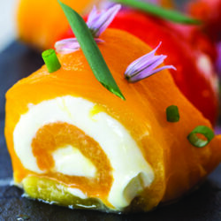 OK, we left out another very important quality of any great, healthy appetizer recipe: ease of preparation! These roasted bell pepper rolls contain only three ingredients, and are a cinch to put together. Whether your friends and family are texting to let you know that they’re stopping by, or you’re running late to a potluck, simply roast your peppers while you get dressed and ready, and then roll them with your cream cheese and sprinkle with chives for a combination of flavors and colors that will wow everyone who samples them!