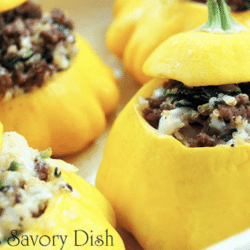 1. I have made this recipe over and over again, so it is about time for me to comment tell you how thankful I am to have a useful and tasty place to put the patty pan squash from my CSA. Now, instead of stuffing the squash, I just chop it up and cook it with the onions, etc. and make a "casserole." So much easier to cook / eat and just as tasty!