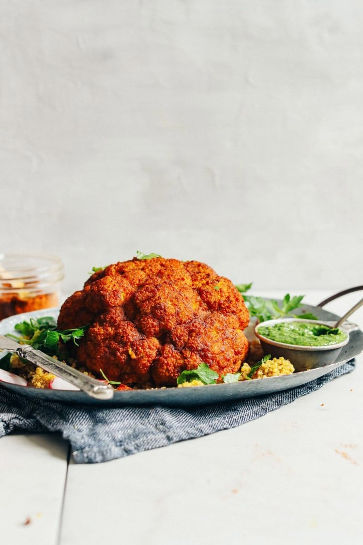 The Minimalist Baker knows that you don’t need meat to have a satisfying entree! This vegan cauliflower recipe eats like a steak and it’s full of spicy flavor.