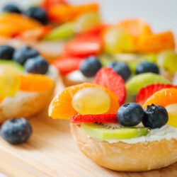 Summer is a great time to indulge your sweet tooth, because you can satisfy it with seasonal fruits. This breakfast fruit bagel does just that. It’s a clean and healthy way to get your morning sugar fix. The fresh berries, kiwi, and oranges are full of fiber, vitamins, and minerals, so you get nutritional benefits along with natural sweetness. We’ve also used whole-wheat bagels for this recipe to provide you with an extra fiber boost. A fiber-rich breakfast will keep you full until lunch and curb further sugar cravings. The fruit, cream cheese, and honey make this such a tasty dish that you’ll quickly forget it’s healthy!