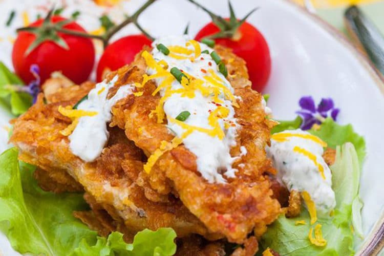 Cornflake Crusted Fish with Chili Tartar Sauce