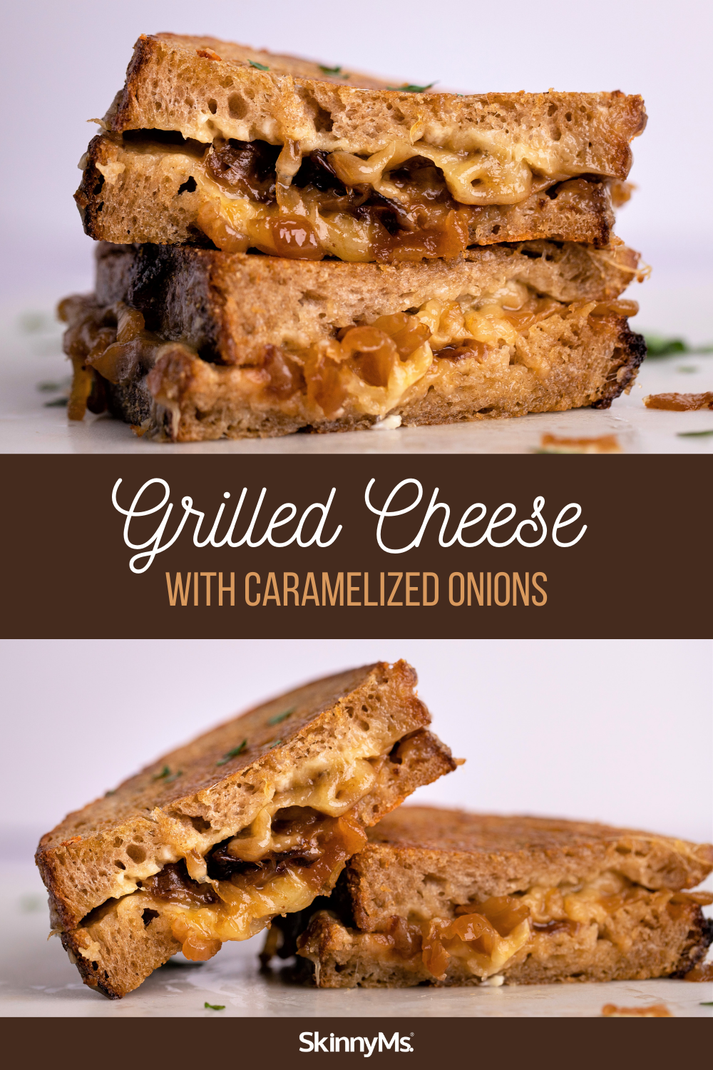 Gooey cheddar cheese and slow-cooked onions join in a harmonious pairing between two slices of whole-wheat artisan bread.