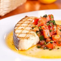 This grilled halibut recipe combines the tender fish with a corn coconut curry sauce and tomato chutney, flavors that seem complicated, but work well together. Despite its elaborate title, the dish is fairly easy to create, making it ideal for a romantic dinner for two or if you are entertaining a larger group. You can even make extra sauce and use it later on chicken or mixed with rice.