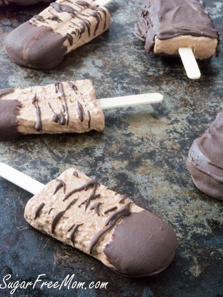 Double the chocolate doesn’t have to mean double the calories. These pops use unsweetened cocoa powder and chocolate-flavored liquid stevia to add sweetness without packing on the calories.