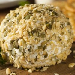 Get the party started with this cheesy crowd-pleaser! This Homemade Cheeseball with Nuts and Crackers is tasty and healthy. Made with clean ingredients like scallions, pistachios, almonds, and blended with some zesty spices, this bite-sized snack has a bold kick. The recipe calls for reduced-fat versions of your favorite cheeses, which keeps the snack’s calorie count in check. Each ball packs a protein punch, and the fiery flavors from the spices will jumpstart your metabolism. This yummy cheese ball recipe is a snap to whip up and an awesome appetizer for any get-together!