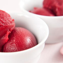 - Pour mixture into a deep container with a lid and freeze until ready to serve. (This will take approximately 5-6 hours). Allow the sorbet to sit at room temperature for 5 minutes before serving. This will make the sorbet much easier to scoop.
