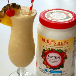 With two flavor options–chocolate and vanilla–it was a tough decision. But I finally decided my taste buds were calling out for Burt’s Bees™ Protein +Healthy Radiance in Vanilla, which I used to create the yummy Piña Colada Protein Shake.