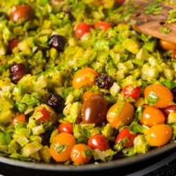 Shredded Brussels Sprouts with Cherry Tomatoes