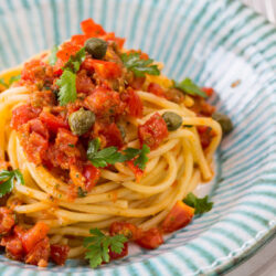 There are plenty of ways to enjoy tomatoes in pasta dishes, whether they are cooked with meat, seafood, vegetables or just with a little bit of olive oil. And the best part is that tomatoes are rich in lycopene, antioxidants, and vitamin C. In this recipe, we don’t cook the tomatoes, and therefore we get 100% of their nutrients. Aside from being a very healthy dish, it is also delicious!