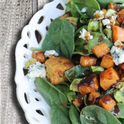 While there are a few stages in the preparation of this salad, after you make it once, you’ll realize just how simple it is to put together. You’ll roast your veggies before baking your cornbread into croutons, and while each of those are in the oven, you’ll simply mix up your dressing. This salad’s calorie count makes it a substantive but responsible meal. And because this recipe is packed with superfoods, those calories certainly don’t go to waste. Brussels sprouts are loaded with vitamins A, C, and K, and contain a healthy amount of fiber. Butternut squash provides beta-carotene and omega-3 fatty acids, and has anti-inflammatory properties. And spinach is rich in flavonoids, which fight disease and signs of aging.