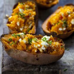 Twice Baked Sweet Potatoes with Feta and Chives